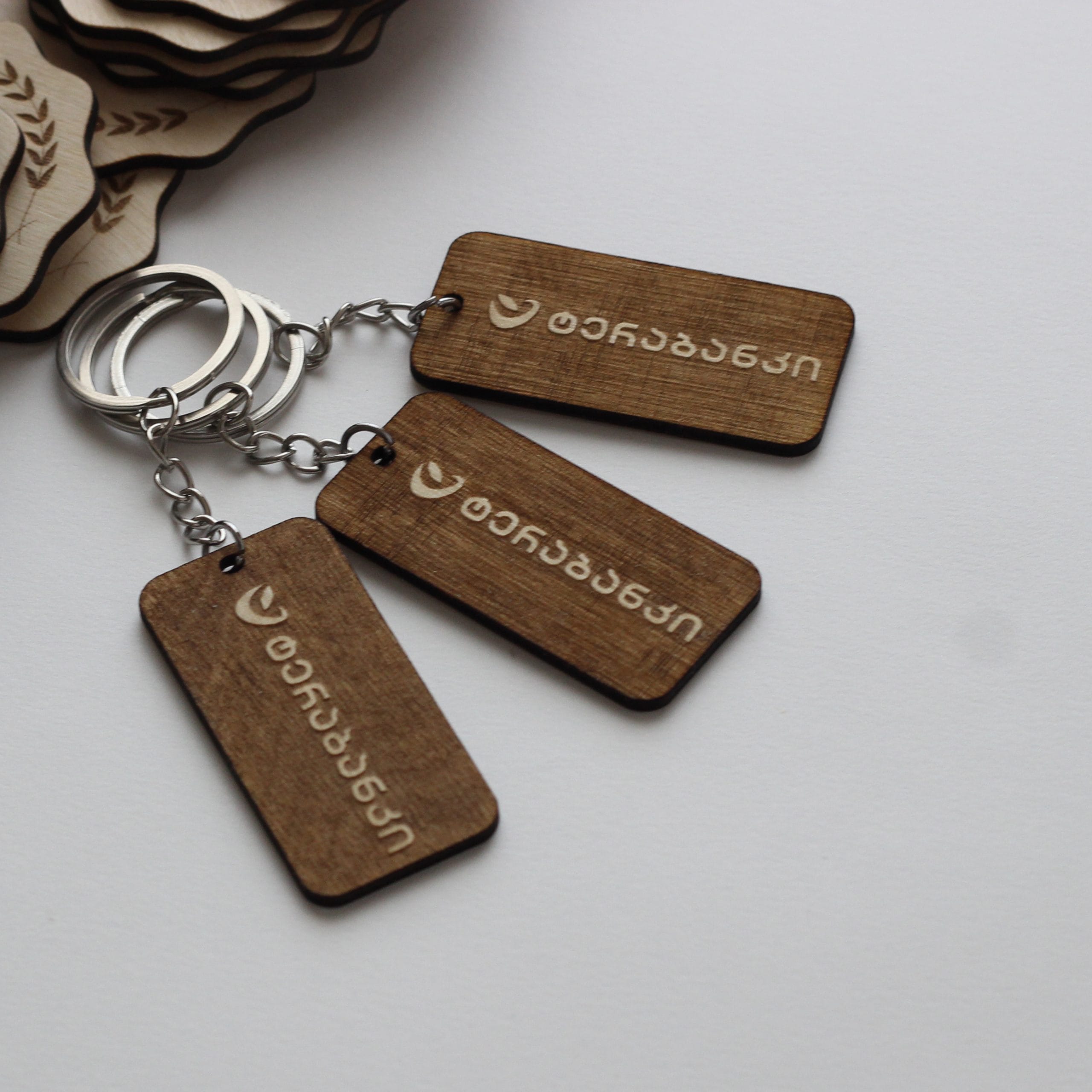 ბრელოკები მზადდება ხისგან, სასურველი ფორმით და წარწერით.