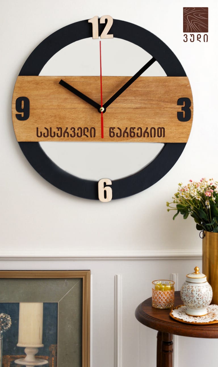 გრავირება თქვენი ესკიზით, ორიგინალური ფორმები და ბუნებრივი მასალები – საათი, რომელიც ინტერიერის გამორჩეული ელემენტი ან/და დაუვიწყარი საჩუქარი გახდება.